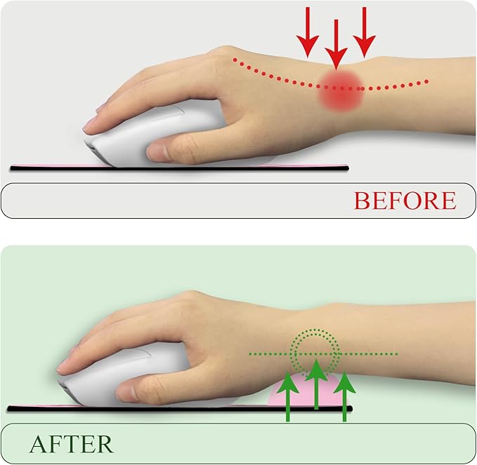 - Ergonomic Design: Our cute mouse pad is specifically designed with a wrist rest to provide ergonomic support and comfort during long hours of computer use. The wrist rest helps to reduce strain and fatigue on the wrist, allowing for a more comfortable and productive working experience