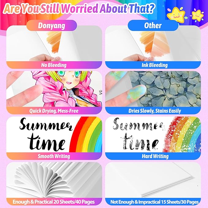 - All Ages Can Be Creative: Everyone, young and old, will love using these books. These blank coloring books are great for all ages to let their imaginations run wild and create their own stories. Our blank paper board books can match well with multiple writing tools, including ink pens, ballpoint pens, gel pens, pencils, colored pens, crayons, stickers, paint, and logos all work great, providing you with a nice user experience. Enjoy your artistic journey with Donyang coloring books.