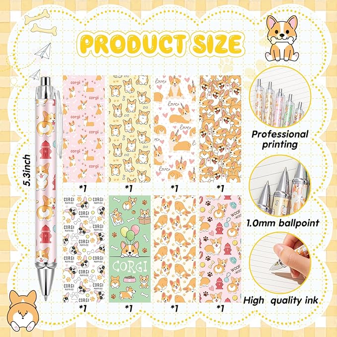 - What You Will Receive: there are 8 corgi ballpoint pens with different styles in the package, the sufficient quantity and variety of styles are enough to meet your various needs on different occasions; They can also be applied as party favors and holiday gifts for relatives and friends