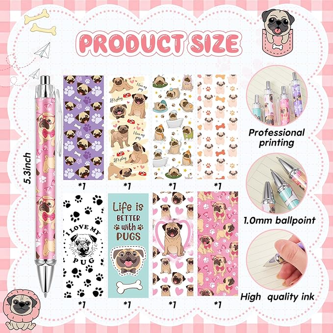 - What You Will Receive: there are 8 pug ballpoint pens with different styles in the package, the sufficient quantity and variety of styles are enough to meet your various needs on different occasions; They can also be applied as party favors and holiday gifts for relatives and friends