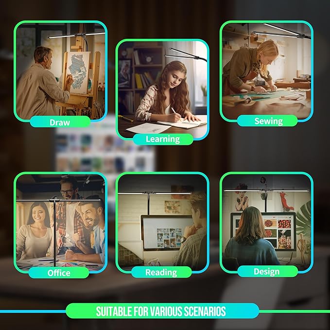 - 【Adjustable Dual Head】TakThree dual-head LED desk lamp provides two flexible and adjustable lamp heads, allowing you to freely adjust the direction and angle of the light. Whether for reading, studying, or working, desk light delivers satisfying illumination and ensures optimal eye protection