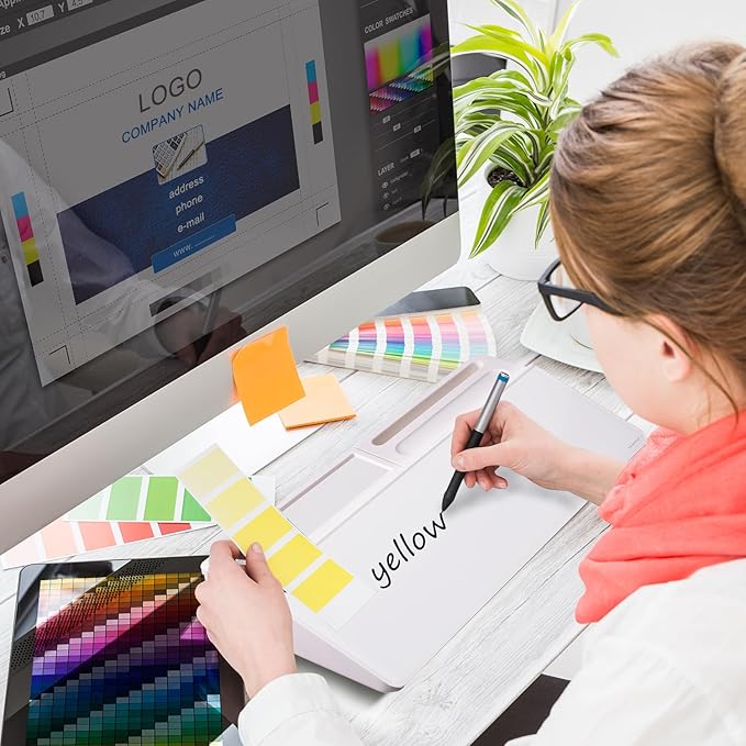- PERFECT DESIGN: Maximize your work area. The desktop whiteboard is designed to sit perfectly between a keyboard and monitor and is slope angled for comfortable reading and writing, or typing when you are using it as a keyboard stand.
