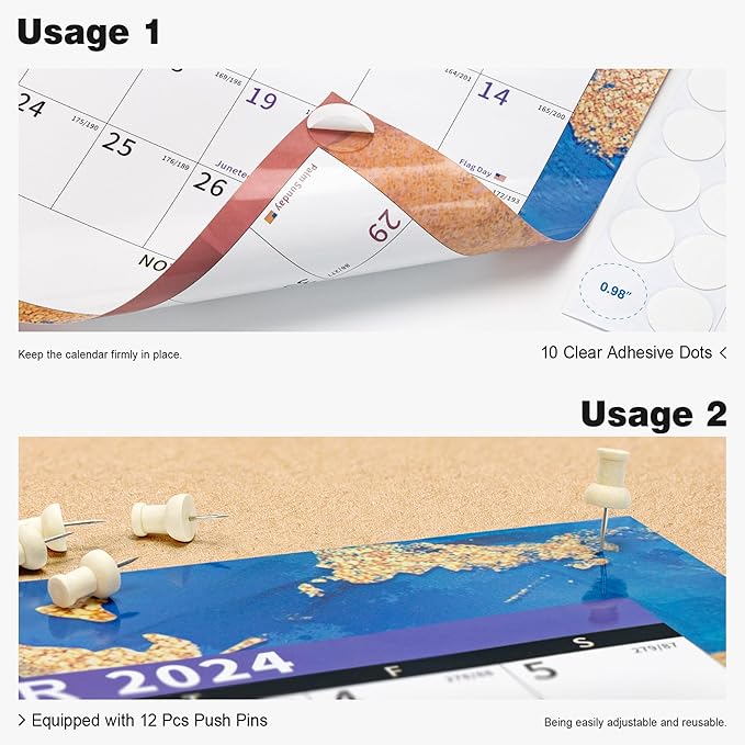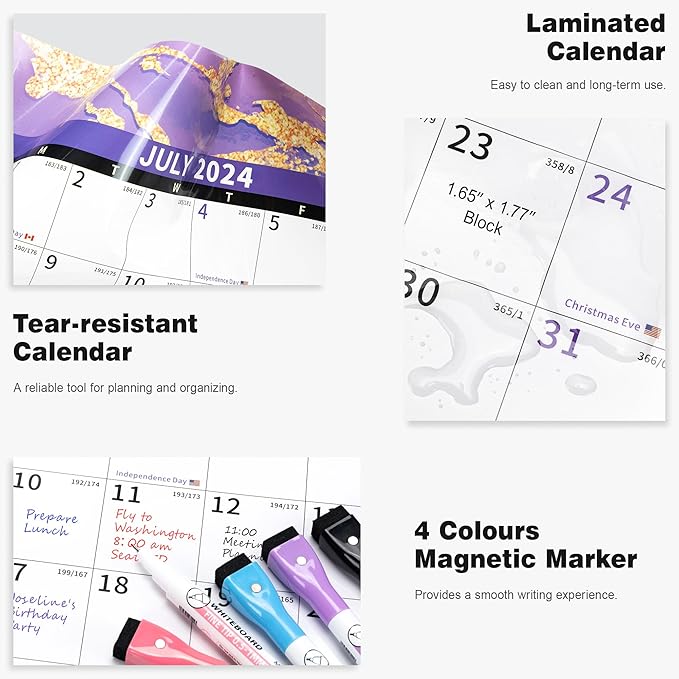 - ✨ Laminated Calendar with Dates: Waterproof wall calendar comes with a mini eraser, four dry-erase markers, 10 push pins, and 10 transparent round stickers. 2 yearly calendar planner covers the time range from July 2024 to June 2026, making it perfect for long-term use.