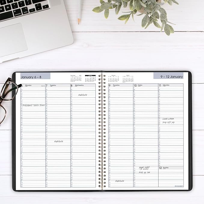 - PROFESSIONAL DESIGN – Planner has a durable black cover and twin wire binding to help prevent snags and secure pages