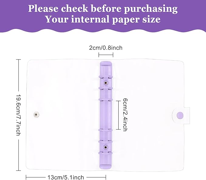 - Proper Size - This clear PVC binder has standard A6 size, approx. 7.5 x 5 x 0.8 inch/ 19 x 13 x 2 cm. The round ring binders with the inner diameter of 2 cm/0.8in, which keep approx. 100 sheets paper with standard A6 size. Potrable, perfectly fits in your purse, briefcase and backpacks.
