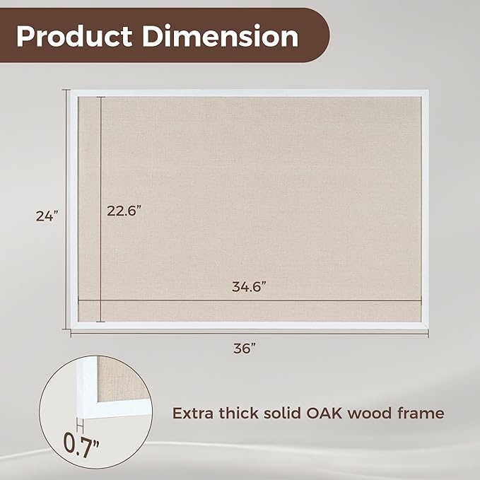 - Size:The bulletin board is 24x36 inch to provide more display space, we also provide thumbtacks, hooks and strings for you to display your favorite items.