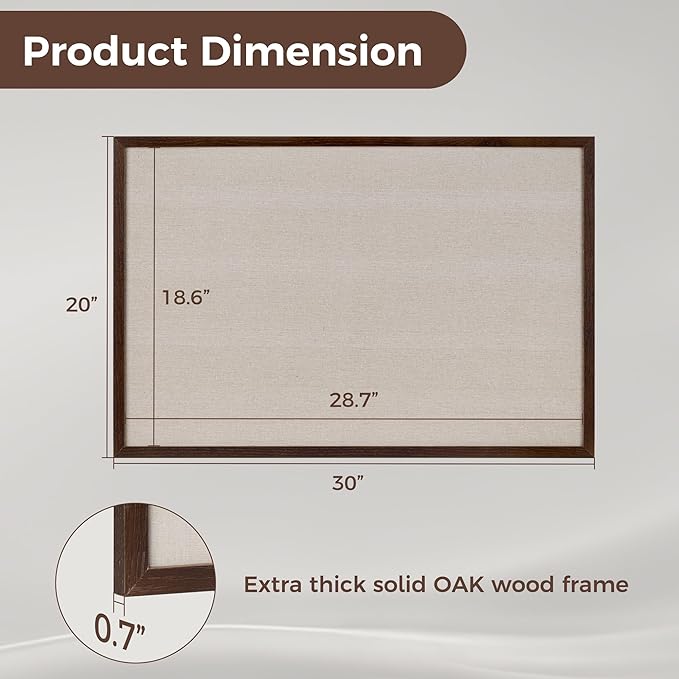 - OAK-Frame Material: Our cork boards for walls is made of 100% Oak wood which has well self-healing ability and repairability. The pin board features a four-ply splint design that is strong and thick enough not to be punctured by thumbtacks.