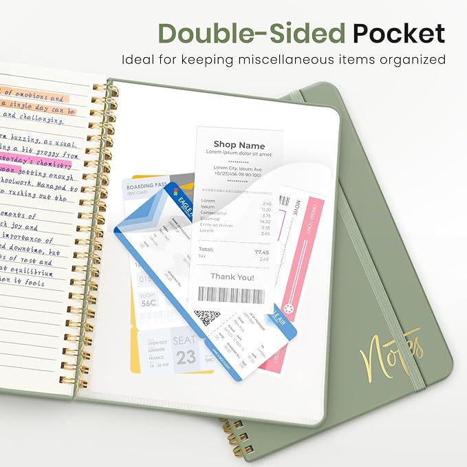 - Streamlined and Practical Design: Featuring 140 lined pages and a 6-page blank table of contents, our notebook provides generous room for note-taking and effortless referencing. An inner pocket safeguards miscellaneous items, while an elastic closure band ensures the notebook remains securely closed when not in use.