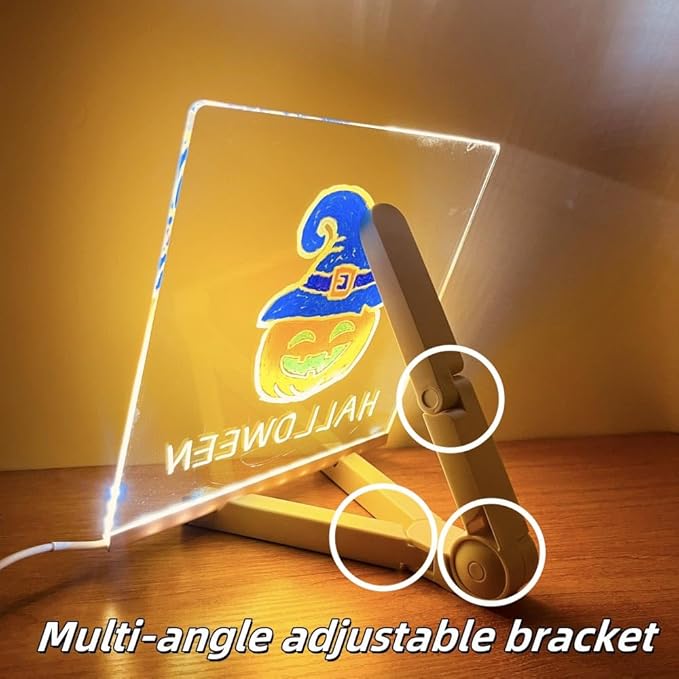 - 【DIY Painted on Message Board】 This is a creative rewritable message board, which is composed of a High-quality transparent acrylic plate and a bracket. You can write or draw anything you think of on the acrylic board, making it a unique night light that belongs to you only. Such as expectations for tomorrow, encouragement to yourself, daily check-in, memos, etc