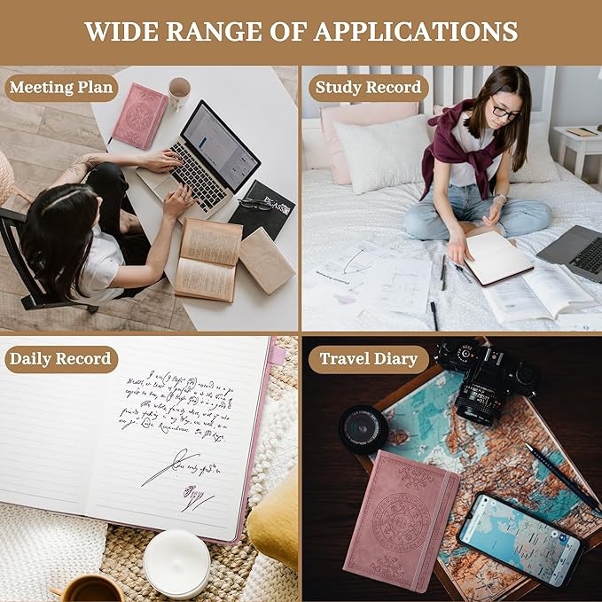 - UPGRADED DESIGN MORE INTIMATE - We have made new upgrades and optimizations to our products!Now every vintage hardcover diary comes with a pen. The journal notebook now is packed with features like pen holder, elastic closure, ribbon bookmark and inner pocket. These thoughtful designs help you better manage and save your ideas and record inspiration anywhere!