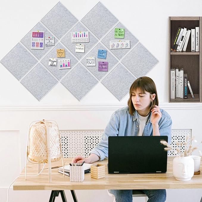 - Complete Set: 12 pcs 12x12x0.5 inch wall felt tiles and 60 pins are included, covering 12 square feet. The corkboards for walls are wrapped in sealed plastic wrap and packed in a sturdy outer box. If you have any problems, please contact us