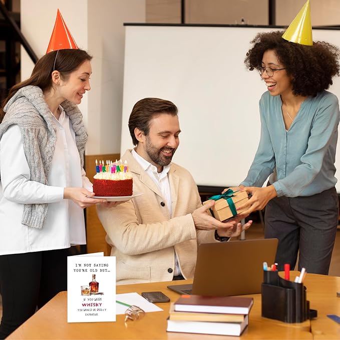 - Funny Whiskey Birthday Card the cover reads "I'm not saying you're old, but if you were whiskey, you would be really expensive", birthday card for 35th 45th 55th 60th 65th 70th 75th 85th , give them a happy birthday in a funny way.