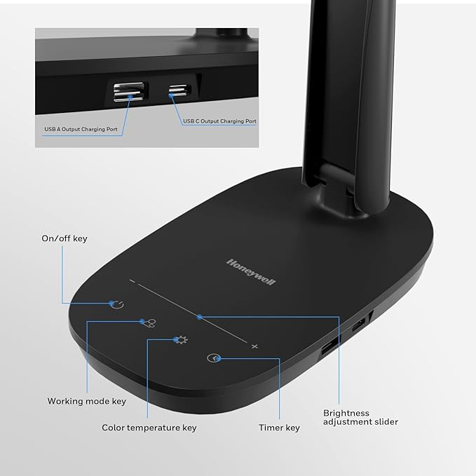 - 【Simulate Natural Sunlight Lighting】 The Honeywell HWT-H2 desk lamp utilizes 48 Sunturalux full-spectrum LED bulbs to simulate natural sunlight for an illuminating experience. The light is gentle, free from blue light, glare, and flicker, caring for your eyes. With a CRI ≥94 high color rendering index, this desk light accurately presents true colors, making them more vivid, and with a lifespan of up to 30,000 hours, it's an ideal desk lamp for long hours of reading, studying, and working.