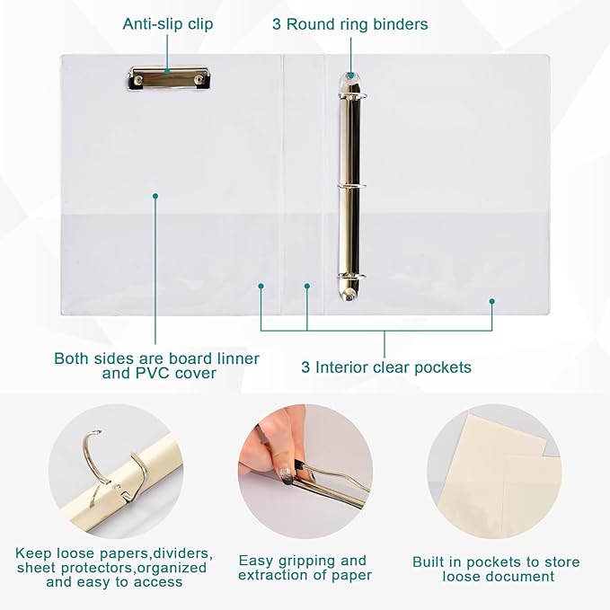- Interior Clear Pockets: 3 built-in clear pockets for storing loose sheets and organizing neatly. Provide extra storage for convenient separation and organization.