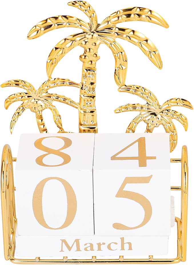 SUPVOX Wooden Block Calendar for Desk Daily Desktop Perpetual Calendar Wood Month Date Display Blocks Farmhouse Desk Accessories for Home Office Decor Reusable Yearly Coconut Tree Design
