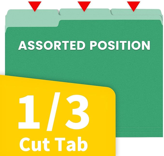 - 1/3 Cut Tab: Effortlessly navigate your files with the 1/3 cut file folder tabs design. This feature allows for clear labeling, making it simple to organize and access your documents efficiently. Keep your office tidy and organized with these easy-to-use folders.