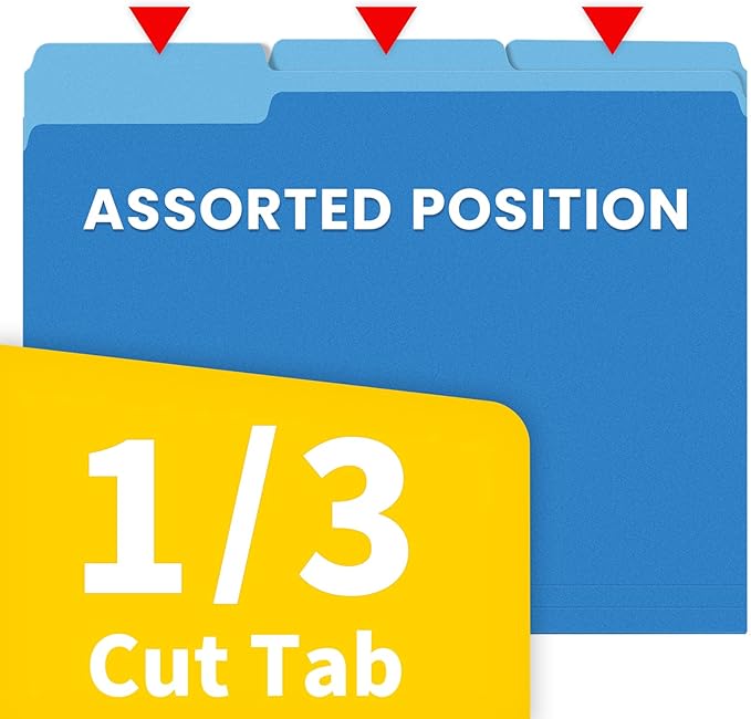 - 1/3 Cut Tab:Navigate your documents with ease using the 1/3 cut file folder labels on these manila folders. This convenient design allows for clear and easy labeling, streamlining the organization and retrieval of your files. Keep your office clutter-free with these colored file folders.
