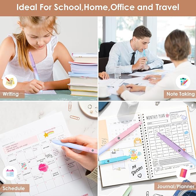 - School Supplies : Hapikalor retractable Gel Pens provides a smooth writing experience, perfect for aesthetic school supplies, office supplies, journaling, planning, writing and note taking.