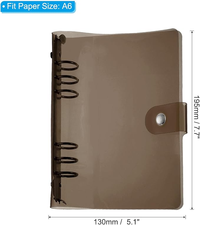 - Specification: Size: 195x130mm/7.7x5.1Inch (L*W); Fit Paper Size: A6; Material: Soft PVC and Metal; Cover Color: Black; Rings Color: Silver Tone; Packing List: 1Pcs x A6 Clear Binder Covers
