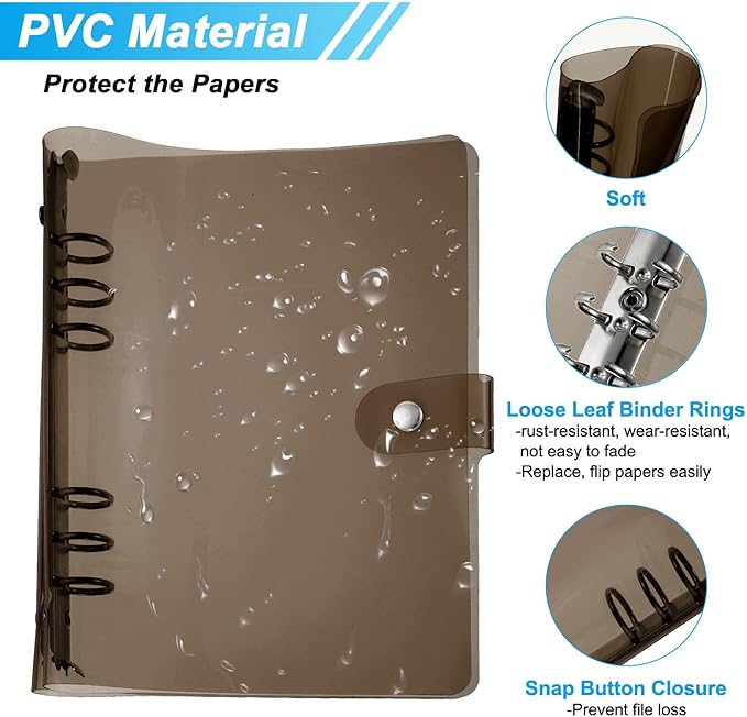 - Advantage: The A5 clear binder cover is made of waterproof soft PVC that is not easy to deform, can protect your papers from tears and dust;The loose leaf binder rings are made of metal that is excellently rust-resistant, wear-resistant, not easy to fade, can be used for a long time; They allow you to replace inner papers, flip pages, and write on the back of the pages easily, creating a convenient writing environment; Clear binder cover allows you to inspect the inner pages easily.