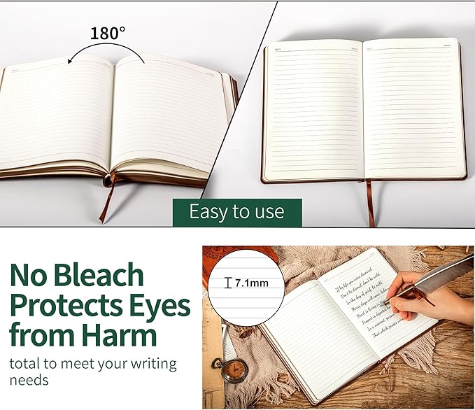 - LINED INNER PAPER - This leather softcover diary has 144 sheets/288 pages of lined papers; The rounded corners of the paper can protect the diary from curving. It can be 180 lay-flat, making it a pleasure to write in. Used 100gsm bleed proof paper, to ensure a quality writing experience.