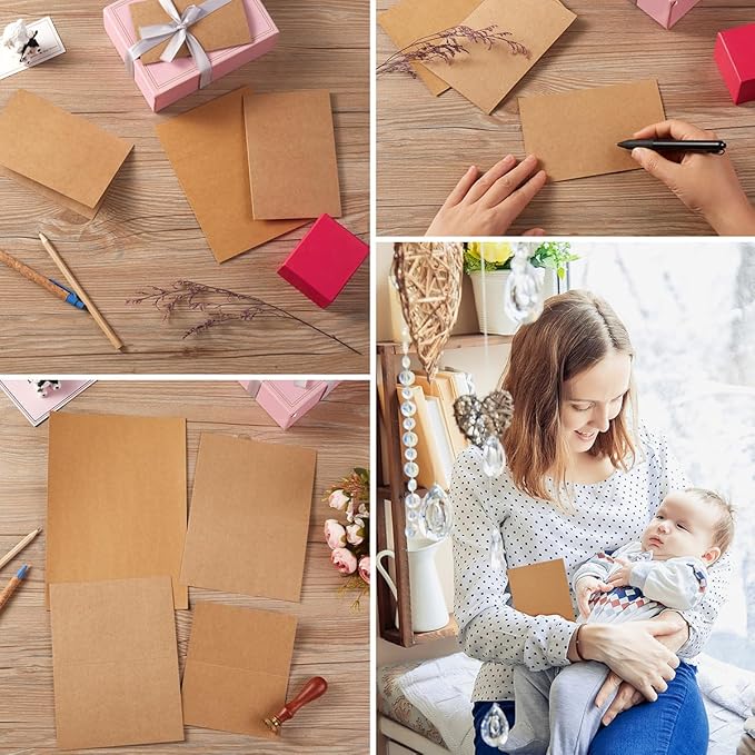 50 Pack Blank Cards Folded Cardstock Thank You Blank Greeting Cards for Invitations, Wedding, Greeting Cards, All Occasion DIY (Brown, 4x6)