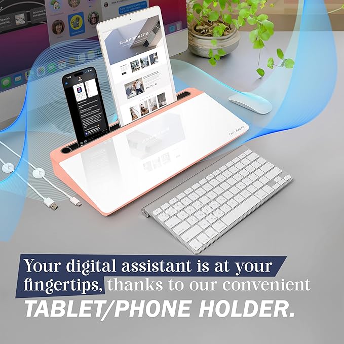 15-Inch Desktop Whiteboard - Glass Dry Erase Board for Desk Whiteboard with Stand with 3 Markers, Spray Bottle, 3 Cable Holders & Storage Box Work from Home Office Gadgets, Peach