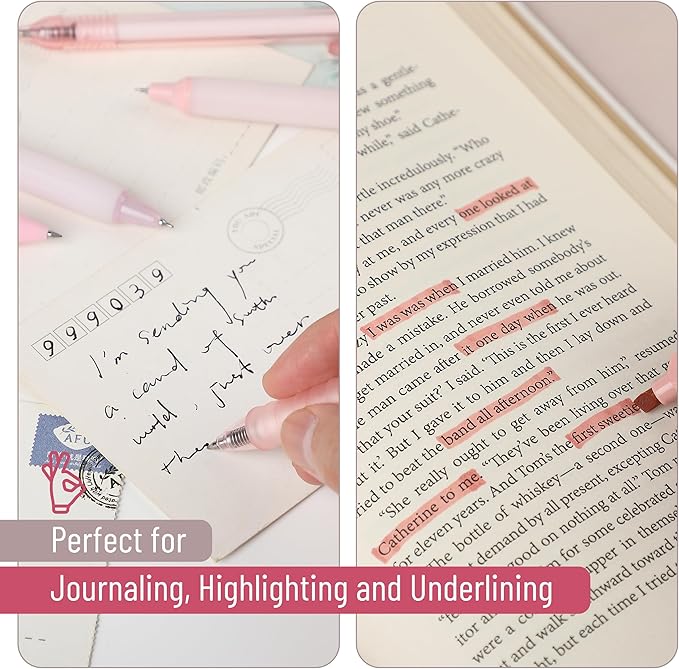- Mr. Pen gel ink pen set includes 11 beautifully designed pens with elegant pastel pink barrels and 1 matching highlighter for a cohesive and stylish stationery collection.