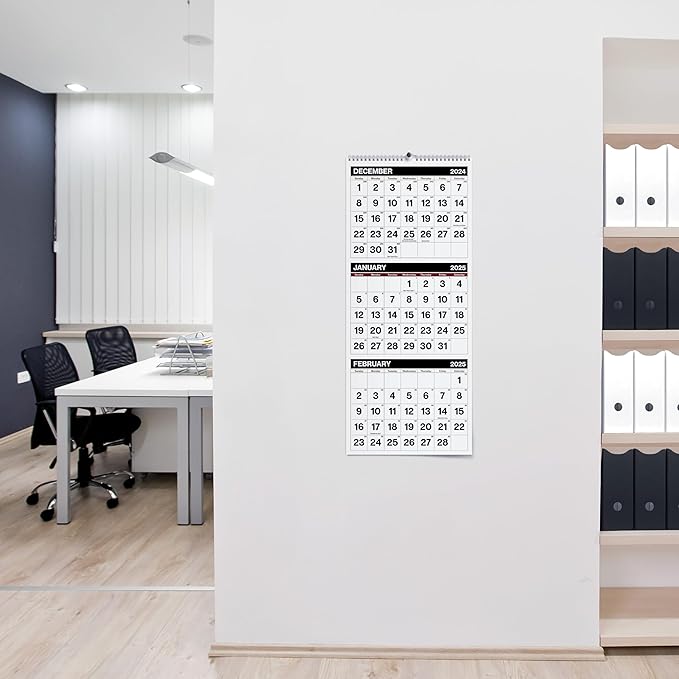 - Big Numbers: Large bold dates easily viewable from a distance. Easy-to-Read big grid calendar, Low vision calendars 2025, 3 month vertical calendar includes popular holidays, Day of the year counters.