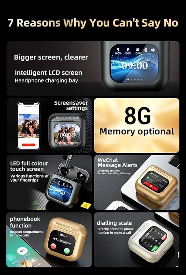 - Make and answer phone calls directly from charging unit. Digital phone book functions, ability to see and make/end calls and see messages throught the charging case.
