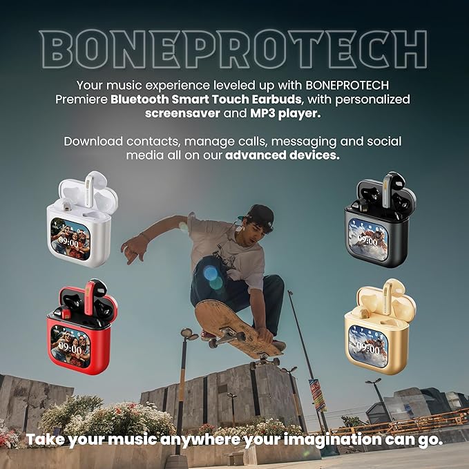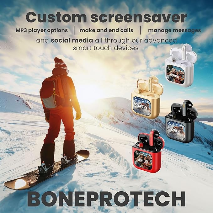 Premier Bluetooth Smart Touch Headset, Customizable Screen Saver, MP3 Player, Control Social Media, Calls, and Messeging Display. Advanced V5.3 Technologies (Red)