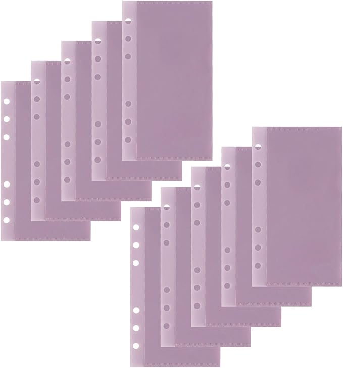 A6 Binder Pockets with No Zipper, Koqye Blue 10 Pcs Plastic Zipless Budget Envelopes, Two Pockets Frosted Cash Envelopes Money Bag for Budgeting, Cash Stuffing (Purple-2set)