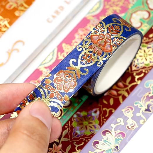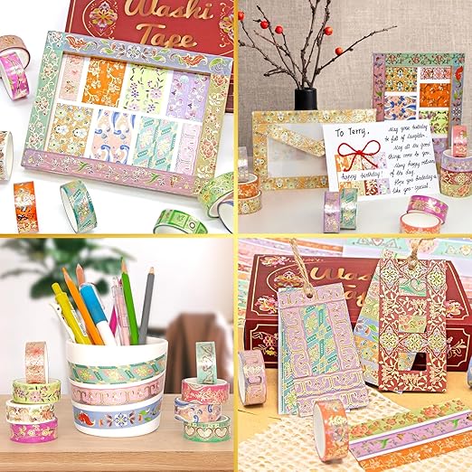 - Floral Feast Themed - This set of 24 rolls vintage gold washi tape features exquisite colorful floral patterns and shiny gold foil striped design, in a color palette ranging from soft pink and purple to vibrant green and blue tones, combined with the foil stamping stripes, make each roll of tape look particularly elegant and noble.