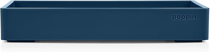 Poppin Stackable Small Accessory Tray - Modular Lacquer Desk Trays for Office Organization, Color-Coordinated Office Supplies for Desk (Slate Blue, Small Accessory)