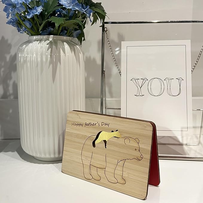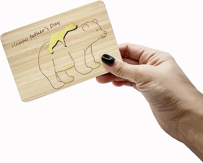 Fathers Day Cards,Handmade Bamboo Greeting Cards,Wooden Thankyou Card,Father's day Card for Dad,Bear dad