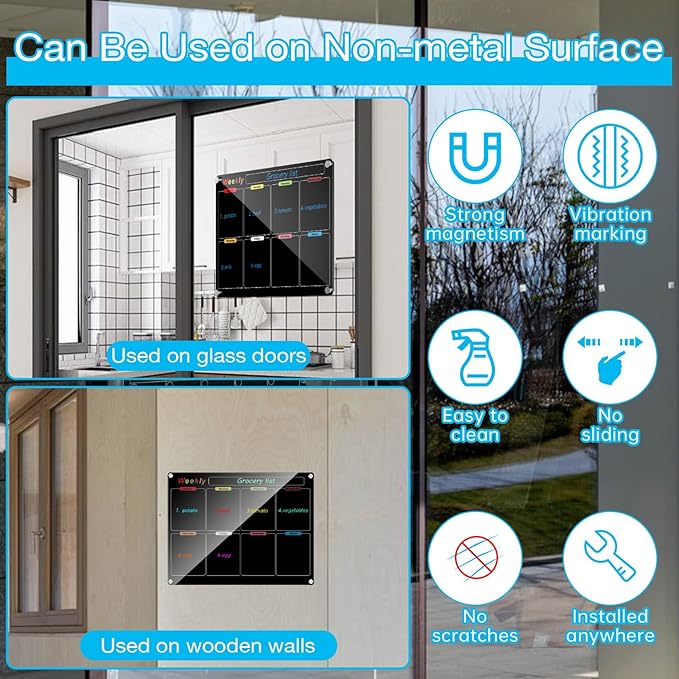 - 【Acrylic Calendar with Strong magnetic Strips】 The acrylic refrigerator calendar board back with dedicated full-wrapped magnetic strips protects the fridge from scratches and damage. Its powerful magnetism ensures a secure grip on the fridge surface and firmly attaches to any flat magnetic surface for versatile uses.