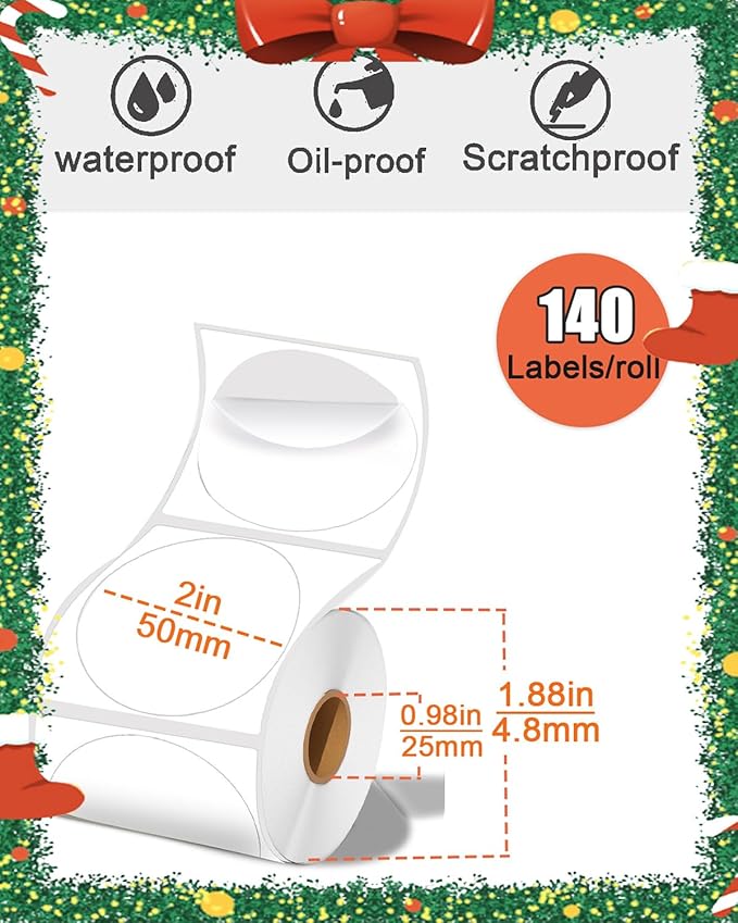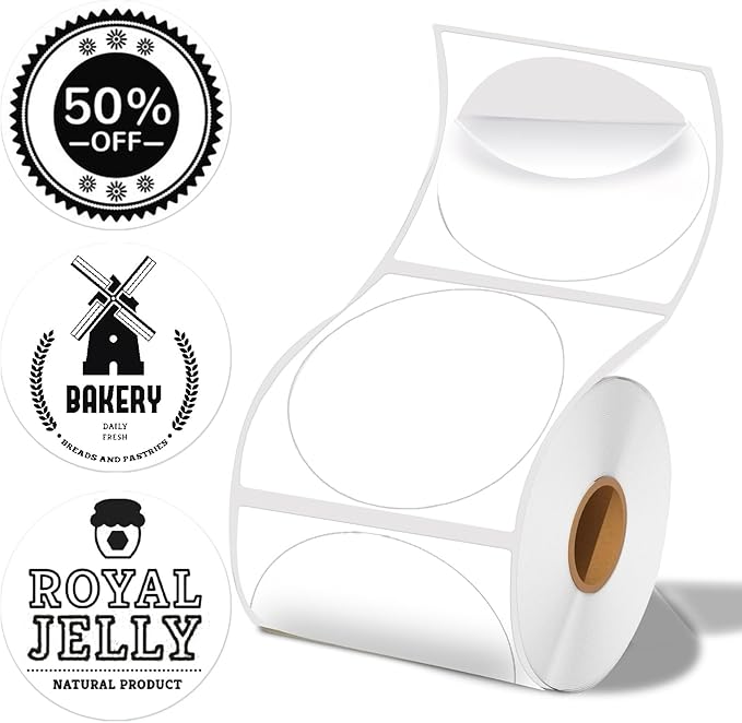 - Specifications]: Wonlabel Round thermal labels with the size: 1.96''×1.96''' (1Wide compatibility: These thermal stickers work seamlessly with ROLLO, ZEBRA, MUNBYN, POLONO, Phomemo, B21, B1, M110, M220, and various other thermal label printers. (Not suitable for use with DYMO and Brother printers).vz0 Labels/1 Roll, White),Paper tube diameter:0.98"(25mm)
