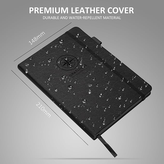- π DURABLE: The excellent A5 hardcover leather-bound cover, simple style, and superior craftsmanship ensure that the self reflection journal becomes a lasting companion on your journey to self-improvement. With 240 pages of high-quality, non-bleed paper, it's perfect for writing and gives you the best experience for setting your goals.