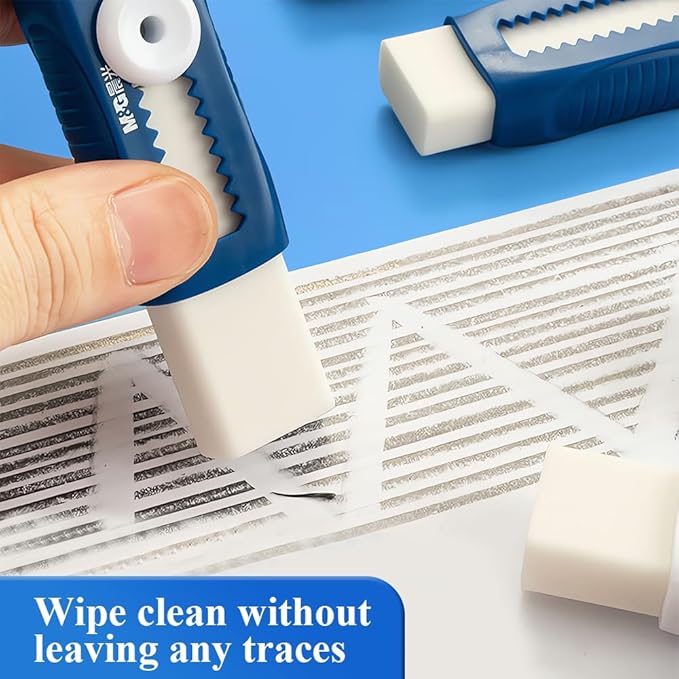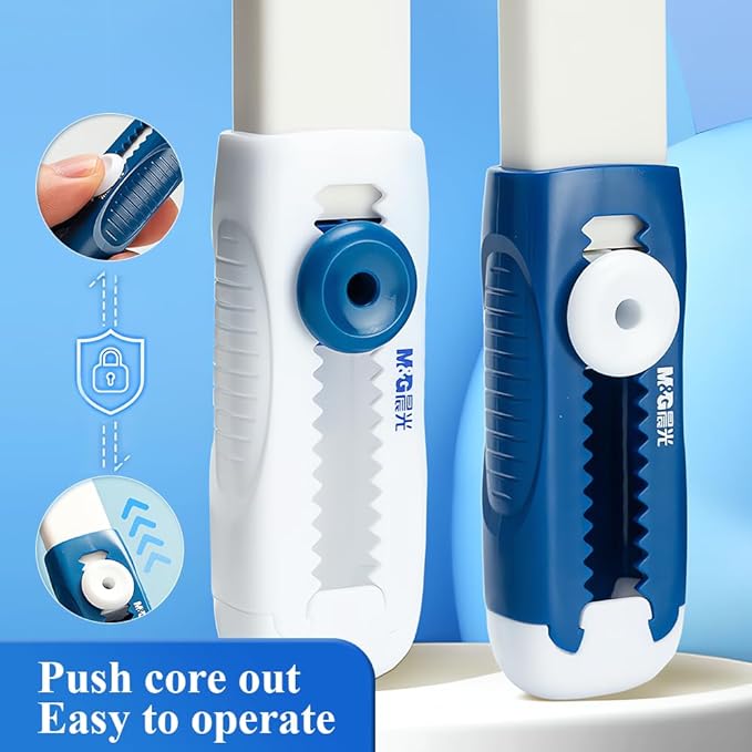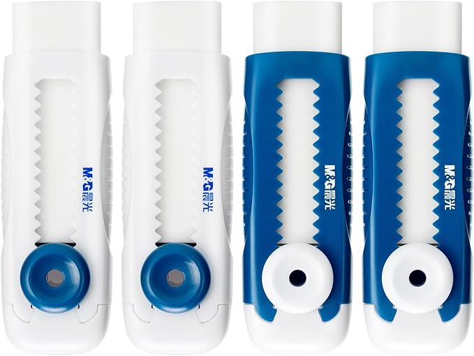 - 【Package Includes】: Our M&G package included 4pcs white push-pull retractable eraser, suitable for remove pencil marks in most scenarios. You can easily correct mistakes on your notes with a gentle push