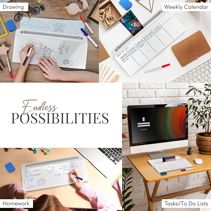 - UPGRADE YOUR WORKSPACE - Working from home or at the office our desktop glass whiteboard for desk complements your home decor & adds a bit of your style to an office space. Lightweight & portable, our desk dry erase board makes it easy to bring our glass white board back & forth from the office.