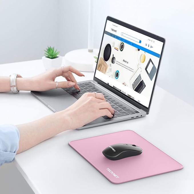 TECKNET Mouse Pad with Anti-fray Stitchin, Waterproof Surface & Non-Slip Rubber Base with Stitched Edges Gaming Mouse Mat for Laptop,Compatible with Laser and Optical Mice - Pink