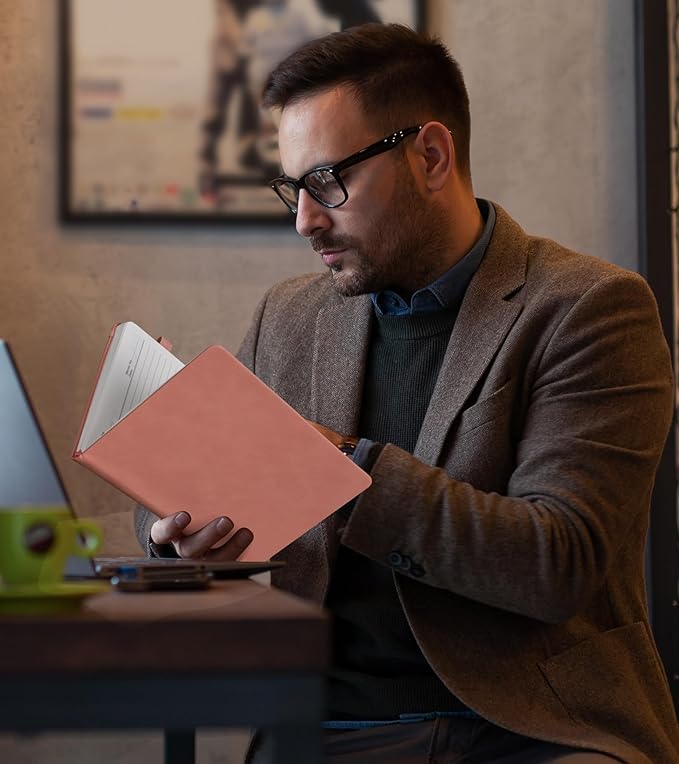 - 【180°Lay Flat Design】 Make a statement with the stylish pink edge of this journal notebook, adding a touch of vibrancy to your writing experience. The 180°lay flat design allows for seamless writing and effortless page-turning, enhancing your comfort and convenience. Standard 8mm space classic college ruled journals. Each page has “Memo No” and “Date” header to help you keep track of the date. Unleash your creativity with this notebook, tailor-made for journaling notebooks enthusiasts.