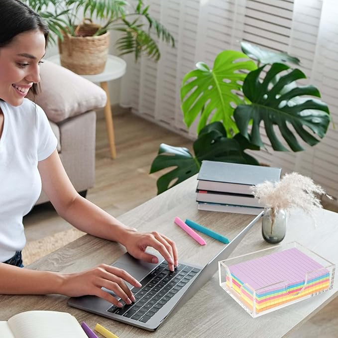 - Premium Acrylic Material: Self-stick note pad holder is made of 5mm thinkness high-quality acrylic with smooth rounded lines and a polished surface, stable, long-lasting and environmentally friendly