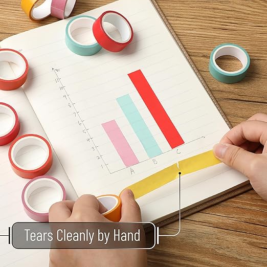 - Crafted from premium-quality paper, these washi tapes are easy to tear by hand, stick securely, and remove without leaving any residue.