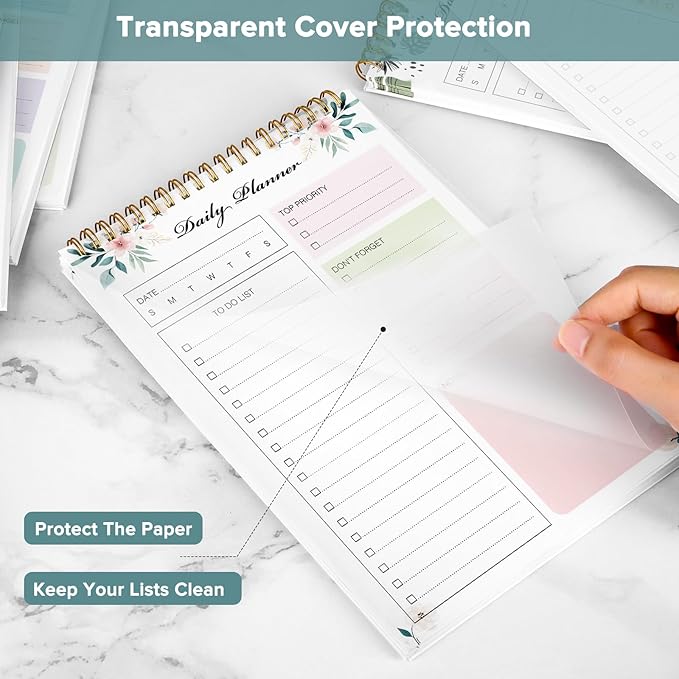 - Premium materials: This task planner features a clear PP cover that protects the interior pages from dust and wear. The back cover is made of sturdy cardboard, providing stability for writing. Made from high-quality paper, our to-do list notepad ensures a smooth writing experience without ink bleeding