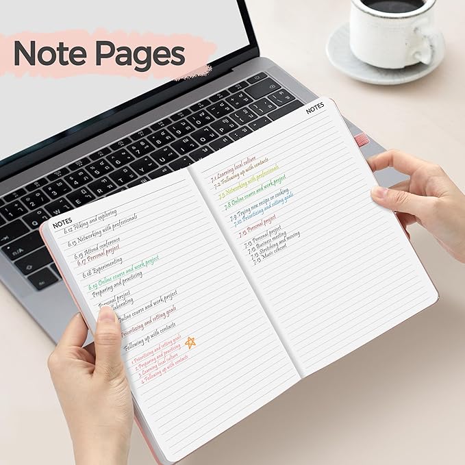 SUNEE 2025 Weekly & Monthly Hardcover Planner 5.5" x 8.3" - 12 Month (January 2025 - December 2025), Small Hardcover Planner, Pocket, Notes, 100 GSM Paper, Peach Pink