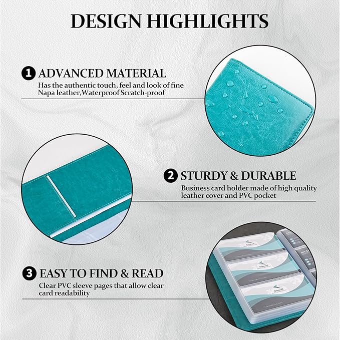 - EASY TO USE: Card holder book made of high-quality leather cover and transparent PVC pocket sheets allow you to quickly access the card. With this business card storage, all cards are together and can be stored safely.