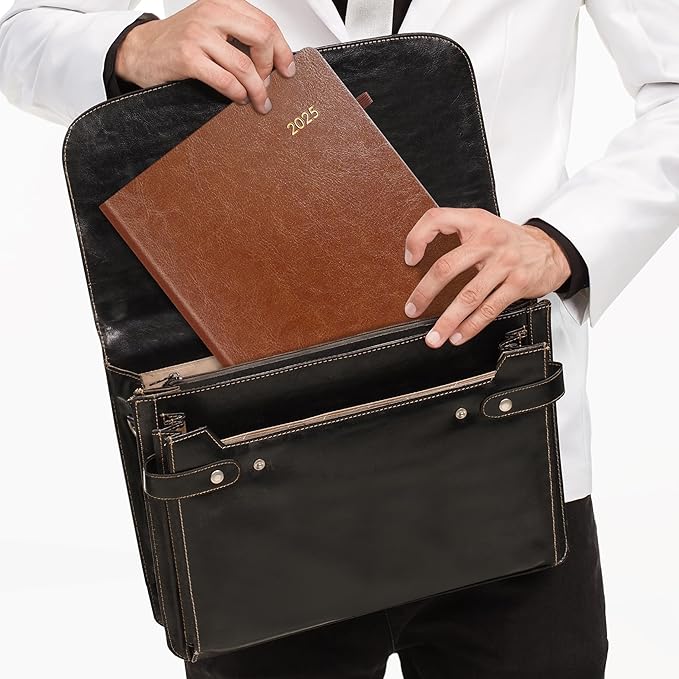 SUNEE 2025 Weekly & Monthly Hardcover Planner 8" x 11" - 12 Month (January 2025 - December 2025), Small Hardcover Planner, Pocket, Notes, 100 GSM Paper, Brown