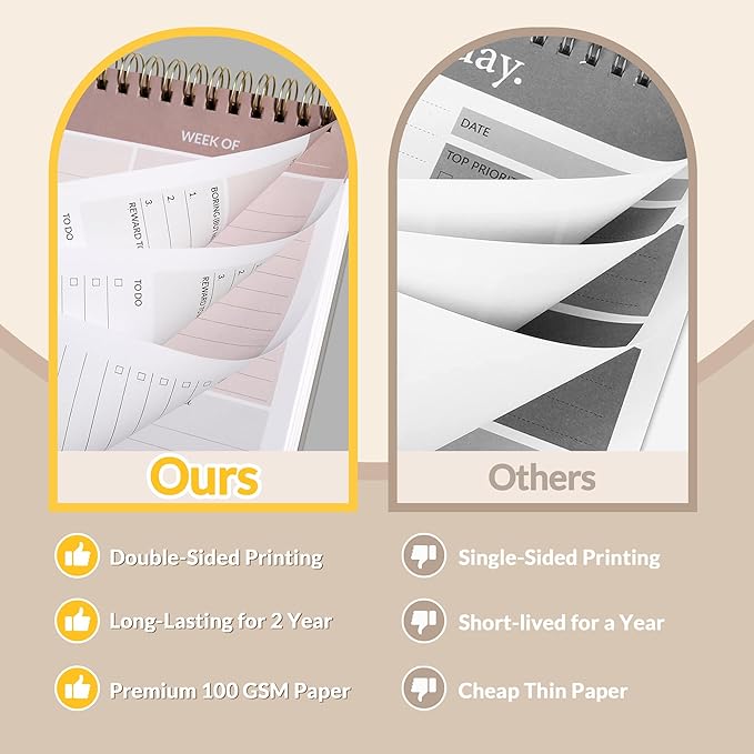 - Last 2 Years: Double-sided printing long-lasting for 2 years (52 undated Sheets)! Help keep you organized and motivated throughout the week.