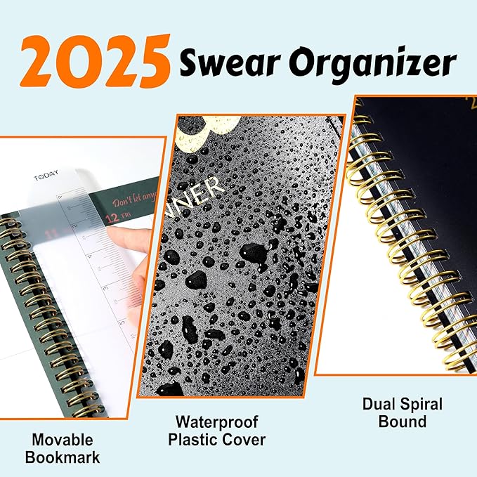 2025 Fuck It Planner for Tired-Ass Women, 8.5" x 11", 12 Months Funny Weekly Organizer With Sweary and Badass Affirmation, White Elephant Gifts for Adults Funny, JAN - DEC 2025, Black